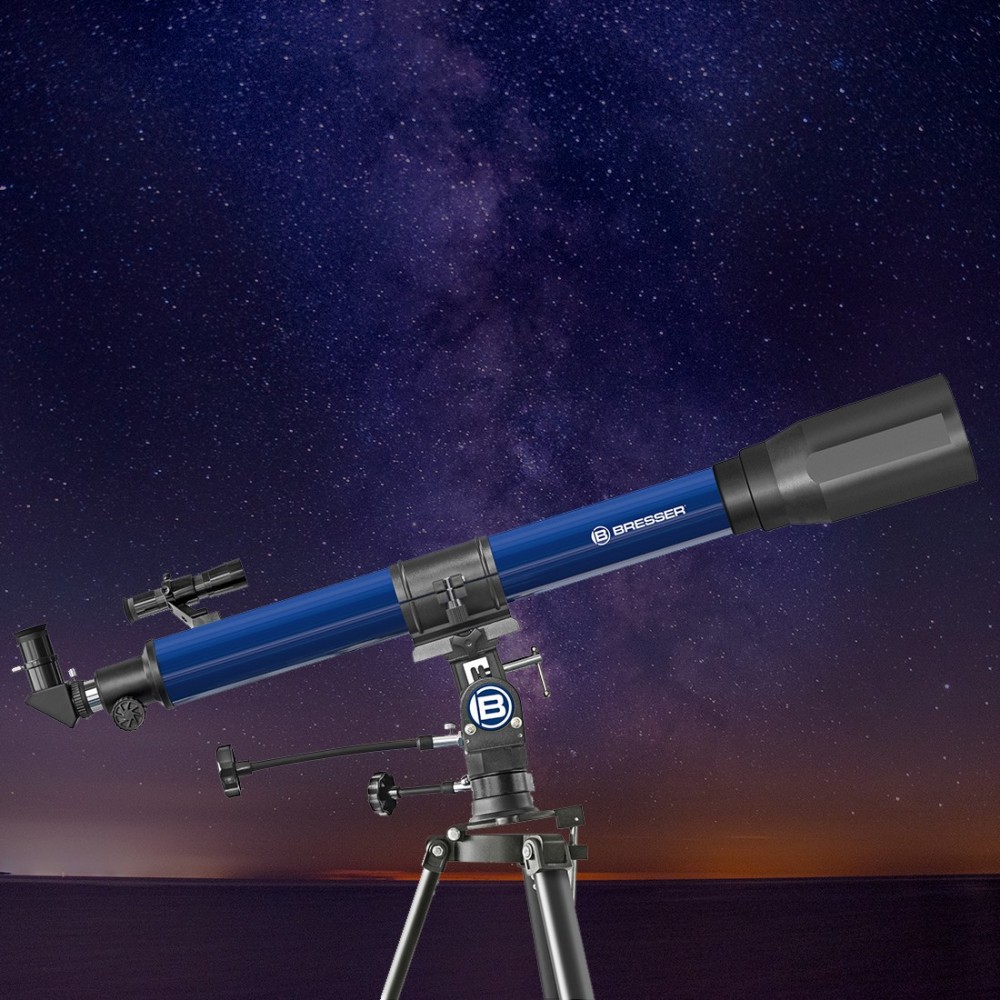 CARACTERÍSTICAS ESPECIALESMontura con cuña: a primera vista la montura NG del telescopio es una montura normal azimutal 70/700 NG: un eje de izquierda / derecha y un eje para arriba/abajo, como los trípodes normales de cámara. Este modo tiene sentido sobre todo con observaciones durante el día. Con la cuña incorporada en ella se puede inclinar, por lo que toda la montura se puede convertir en una montura ecuatorial para la astronomía con una sola operación. Para el uso de la montura ecuatorial un eje está alineado con la estrella del norte. Para el seguimiento de un objeto celeste únicamente un eje tiene que moverse, que es claramente un alivio en comparación con el seguimiento de un objeto en el cielo de la noche con las monturas que sólo tienen ejes arriba/abajo e izquierda/derecha.
