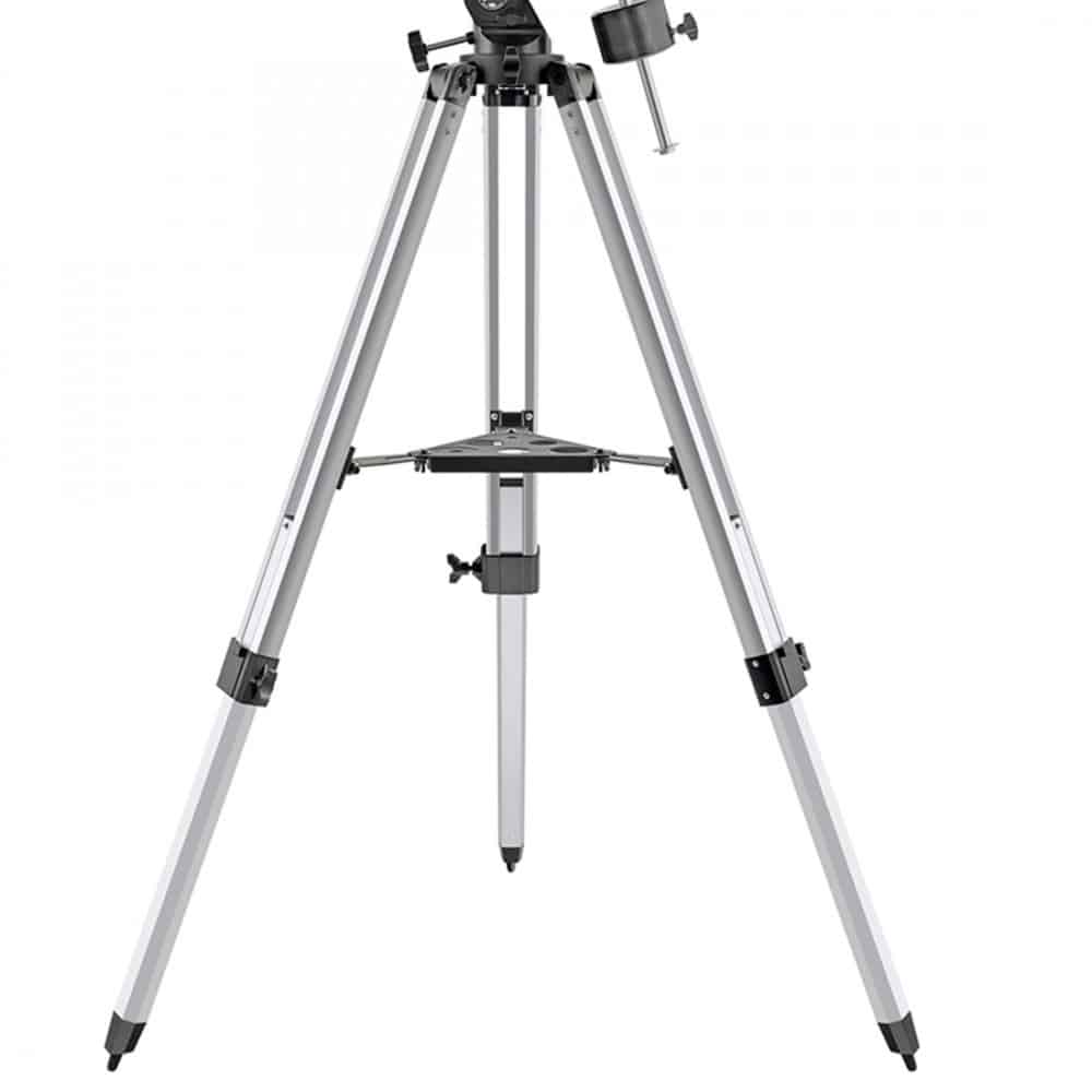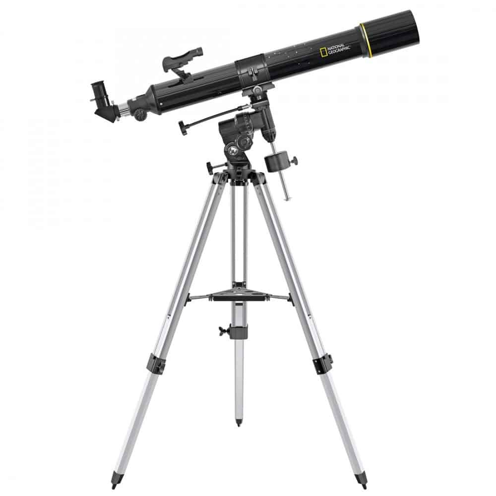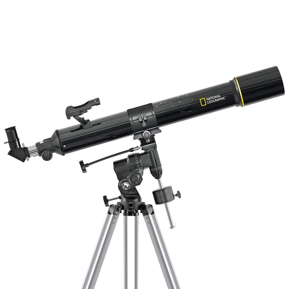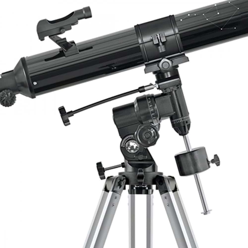 El telescopio refractor 90/900 es un clásico y se puede utilizar tanto para astronomía como para observaciones terrestres, por ejemplo de la naturaleza o de animales salvajes. La gran distancia focal que posee (900 mm) lo convierte en un especialista para observar la Luna, los planetas y los objetos brillantes de nuestro sistema solar. También se pueden ver los majestuosos anillos de Saturno y las tormentas gigantes de Júpiter, así como brillantes nebulosas, galaxias y cúmulos de estrellas si observas en la oscuridad, en una noche sin Luna y lejos de las luces de las ciudades. La robusta montura ecuatorial incluida se puede dirigir a la estrella Pola para seguir los objetos a mano como si fuese un juego de niños.