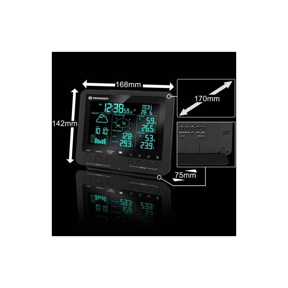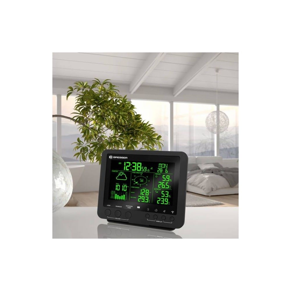 Un clima desfavorable en la habitación provocar a menudo riesgos para la salud, especialmente para niños y ancianos. Para evitarlo, la estación meteorológica 5 en 1 BRESSER también incluye una función inteligente. El indicador del clima en la habitación informa siempre mediante un símbolo sobre el clima que hay en la sala. Además, la estación meteorológica 5 en 1 BRESSER dispone de un ajuste radiocontrolado de la fecha y la hora (señal horaria DCF). Tan solo unos minutos después de encender el aparato se indican automáticamente la hora del centro de Europa (CET) y la fecha con el día de la semana. El conjunto de funciones incluye también un despertador con función de repetición de la alarma (snooze).