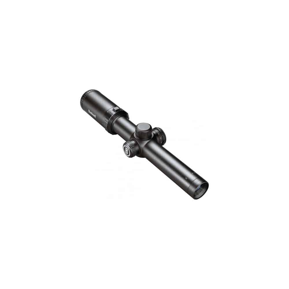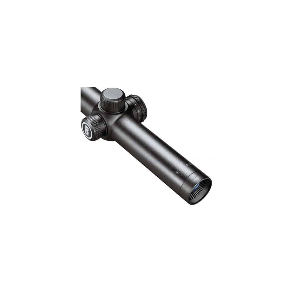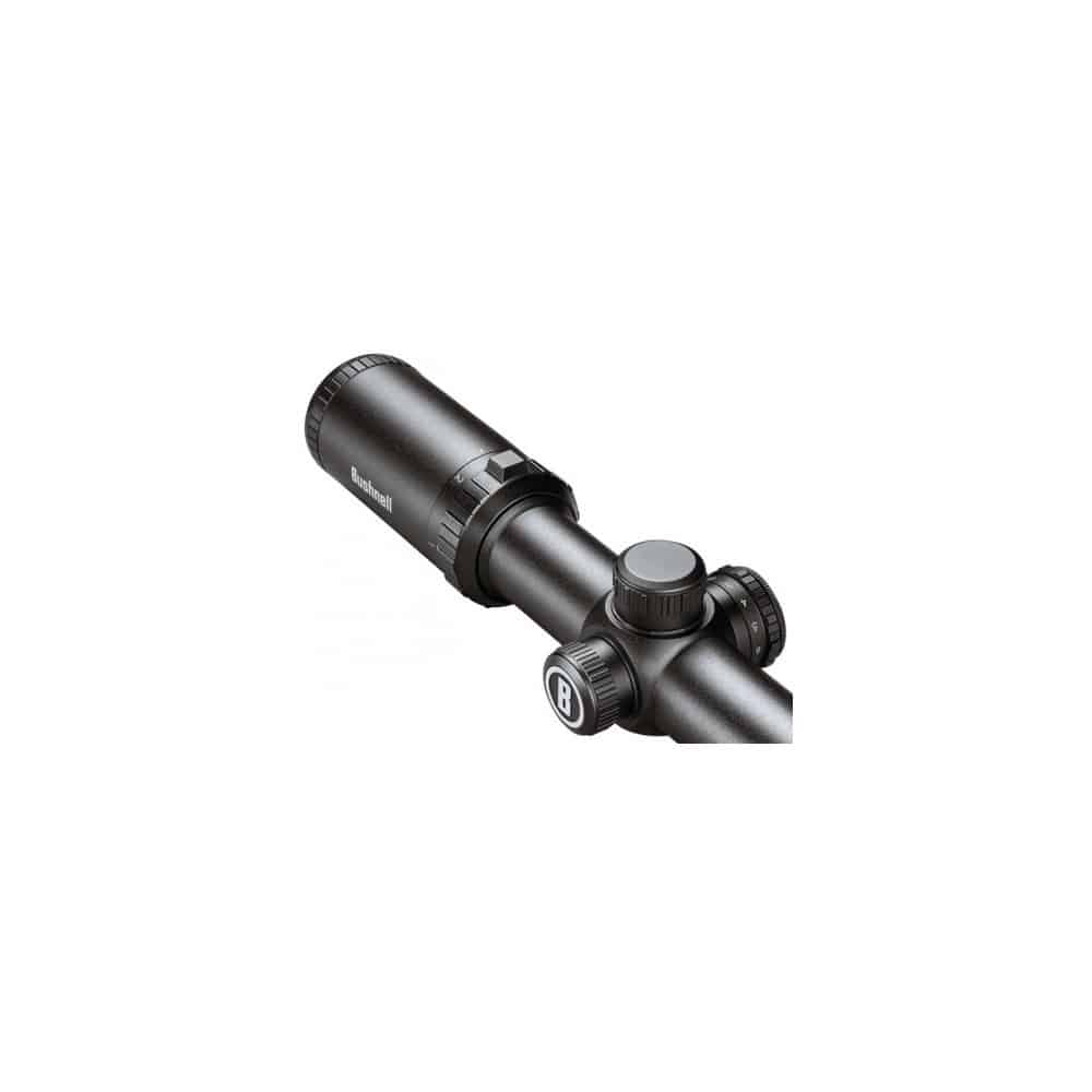 Lo primero que llama la atención es que se trata de una óptica muy bien acabada como cabe esperar de un producto BUSHNELL, se aprecia la robustez característica, pero con un peso moderado de 466 g. El tubo es de 30 mm lo que aporta una buena rigidez estructural y suficiente espacio interior para el tubo erector. En los visores destinados a la caza como es este, a veces es preferible asumir unos gramos más de peso, a cambio de una mayor solidez. Con respecto a la longitud esta es de 285 mm.
